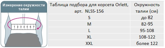 Для правильного выбора подходящего размера ортопедического корсета Orlett NLSS-156 необходимо сантиметровой лентой измерить окружность талии и воспользоваться таблицей, представленной ниже: