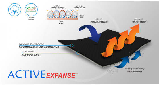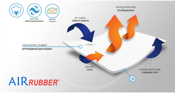- Материал AirRubber с ортопедическими вставками: Обеспечивает компрессию, пропускает воздух, влагу и отводит тепло.