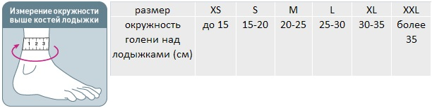 Для правильного выбора подходящего размера голеностопного бандажа Orlett MAN-101 необходимо сантиметровой лентой измерить окружность голени над лодыжкой. Далее воспользоваться размерной таблицей: