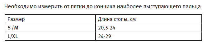 Подбор размера проводится в соответствии с длиной стопы.