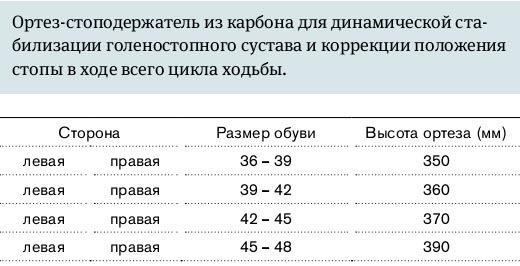 - Конструкция из карбона отличается малым весом, высокой прочностью и упругостью. Энергия, накапливаемая карбоновыми волокнами при изменении формы ортеза, используется для восстановления физиологического рисунка ходьбы.