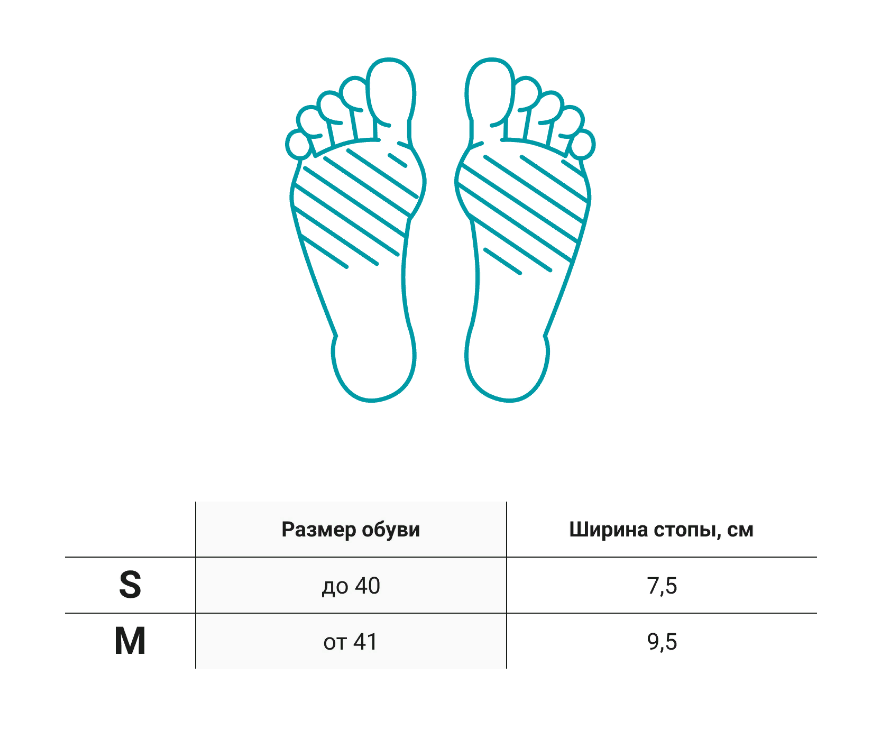 М (9,5 см) - подходит с 41 размера обуви и выше.