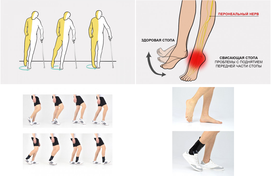 Различные формы парезов и параличей, в том числе вялый паралич стопы