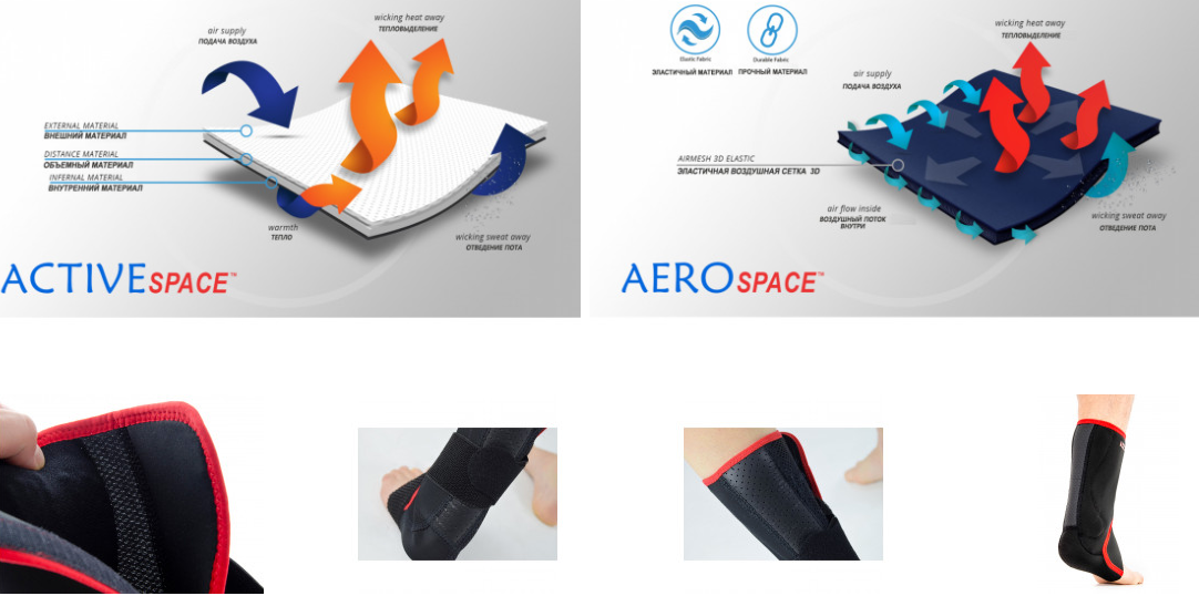 Ортез изготовлен из материалов ActiveSpace и AeroSpace