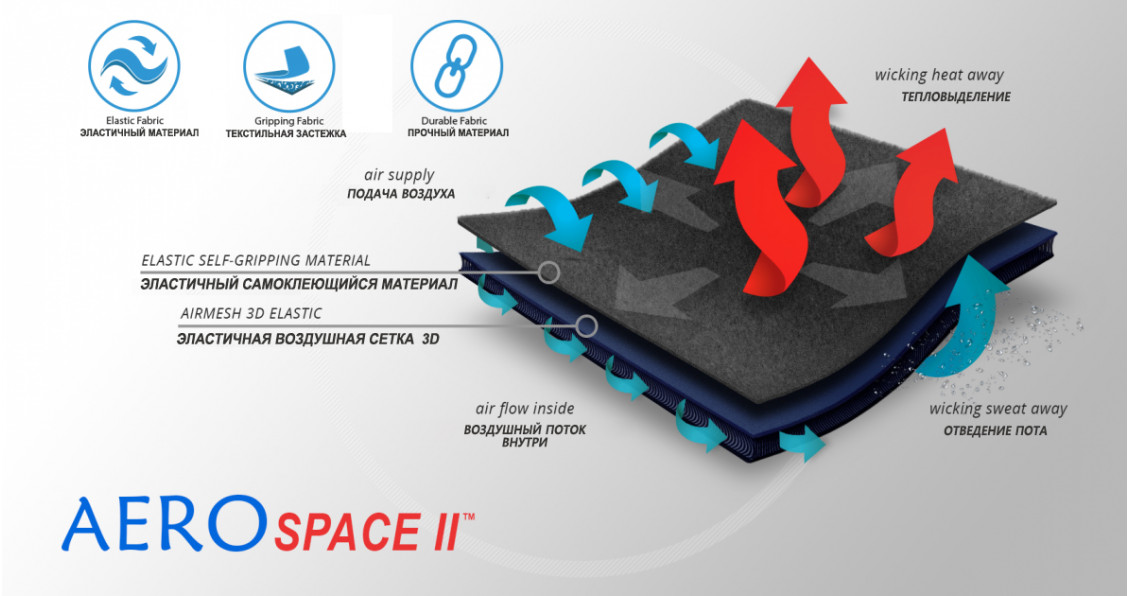 Изготовлен из инновационного дышащего материала AeroSpace II™. Это очень легкий, эластичный материал, хорошо отводит пот и имеет хорошую воздухопроницаемость.