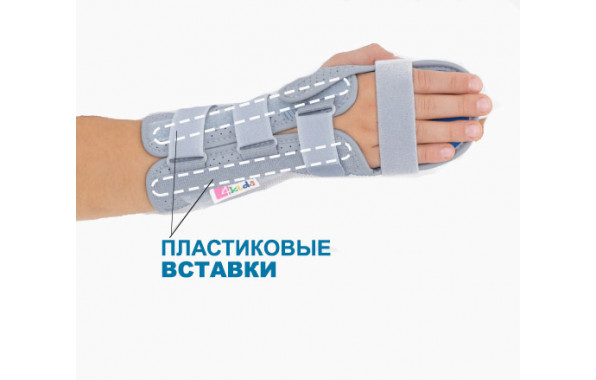 Детская шина на запястье AM-OSN-L-01 обеспечивает иммобилизацию и стабилизацию запястья, кисти и предплечья.
