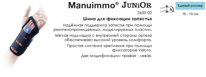 Купить mANUIMMO® JUNIOR Шина для фиксации запястья детская с доставкой в Уфе в интернет салоне Med V Rus по цене 3 250 руб.. Скидки до 25%. Доставка и самовывоз из пункта выдачи товаров. Оплата наличными или картой. Телефон для заказов +7 (495) 003-4512.