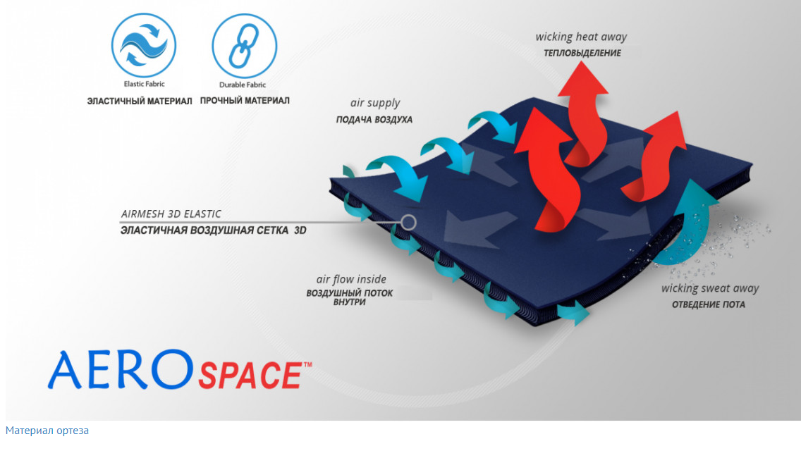 Ортез изготовлен из эластичного и приятного для кожи материала AeroSpace™.