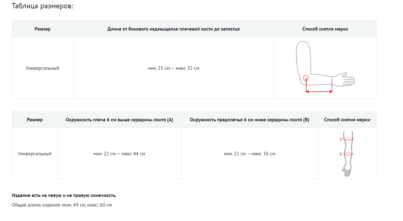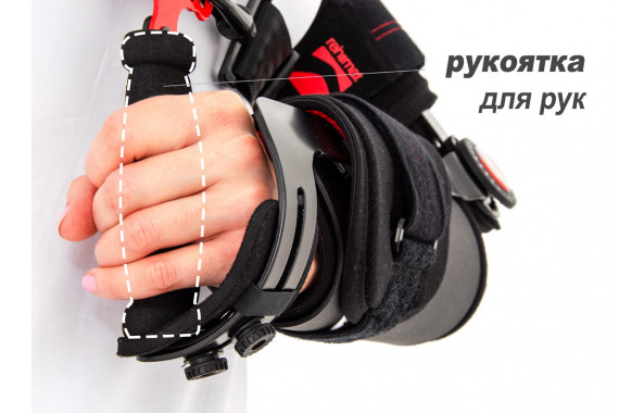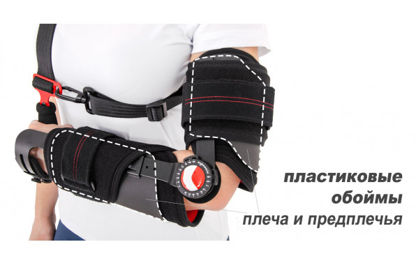 Ортез имеет пластиковые обоймы плеча и предплечья и легко приспосабливается к любой форме конечности. Кроме того, имеет мягкие рукава из велкроткани, которые также адаптируются по форме руки.